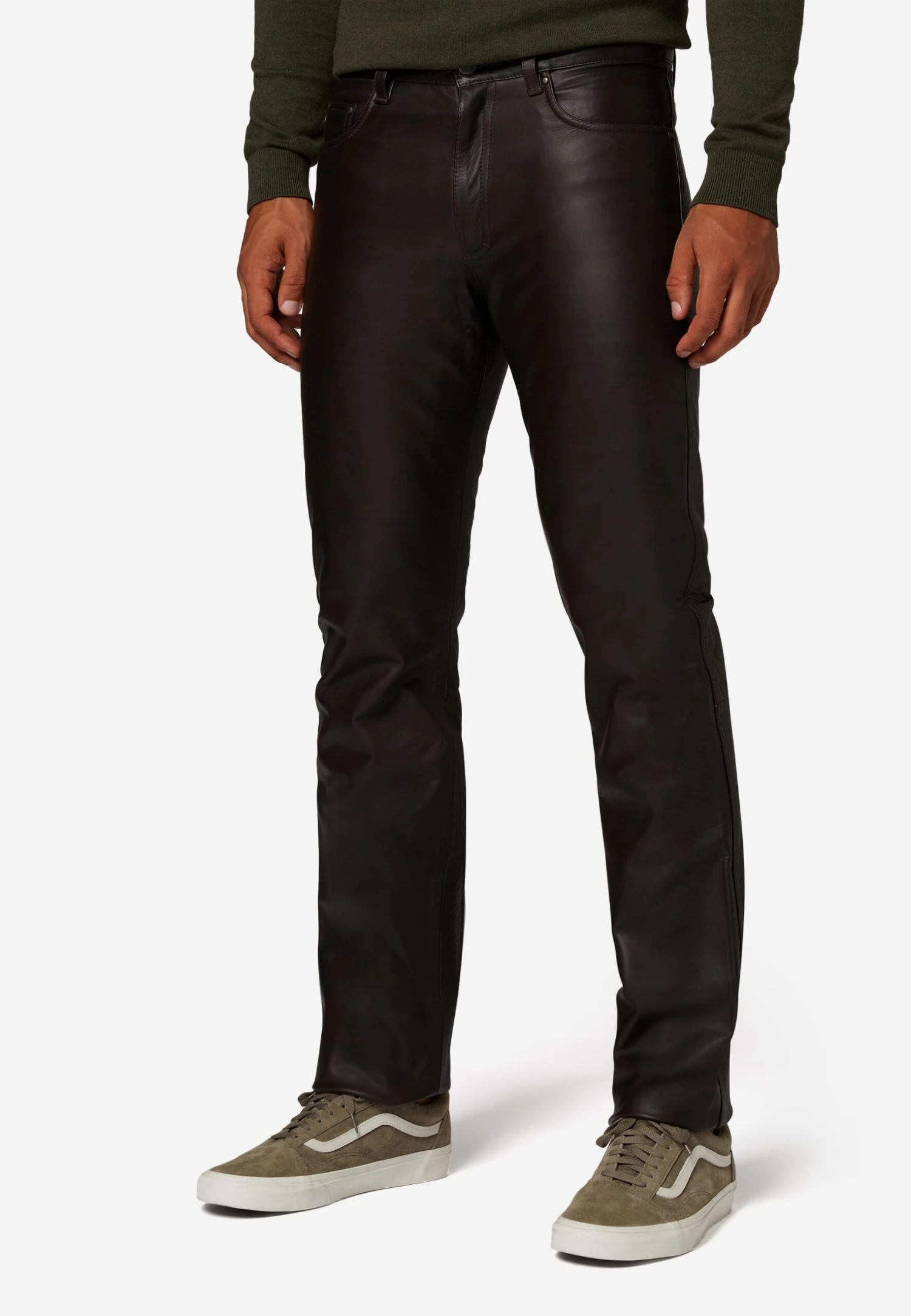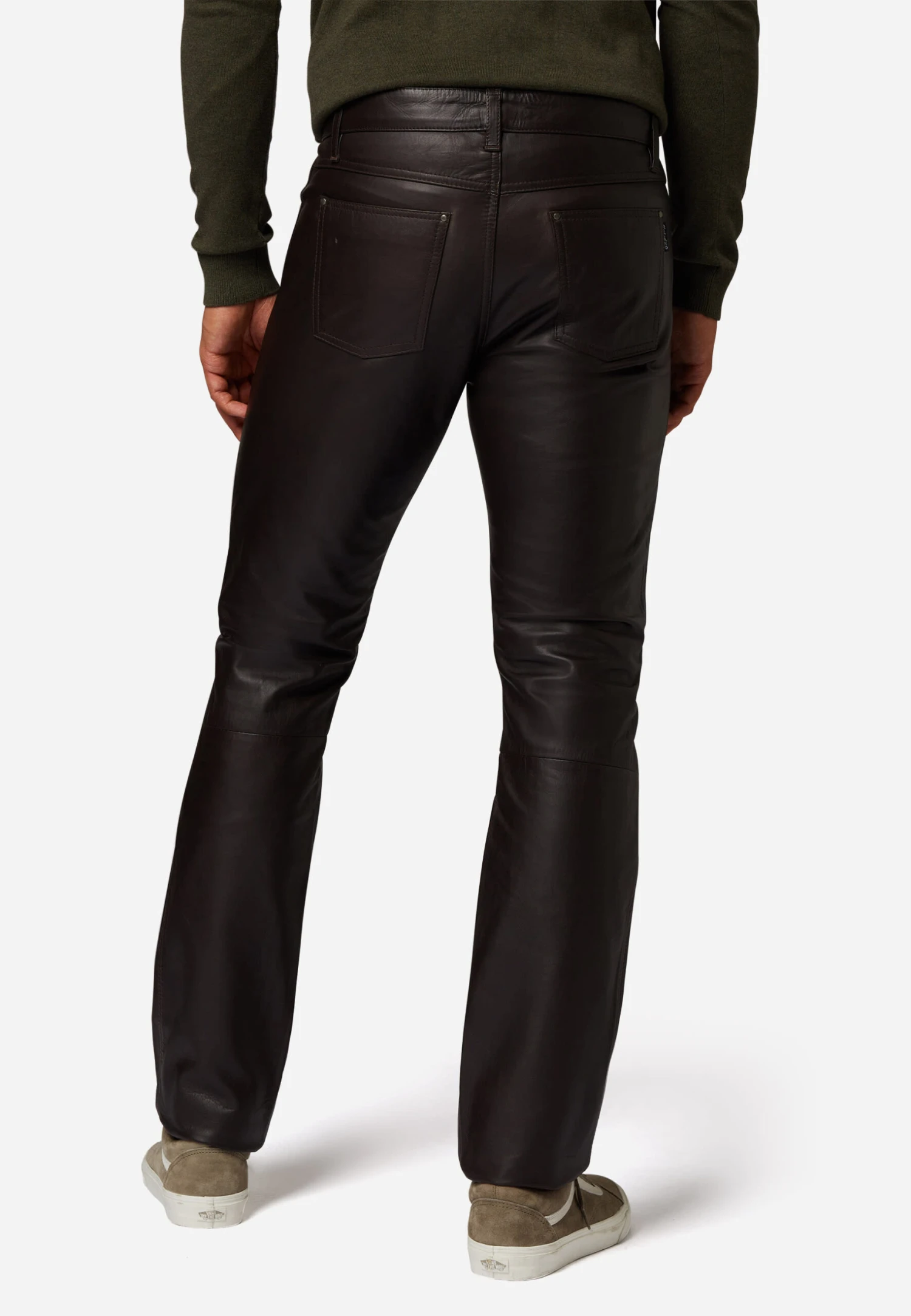 Lederhose No. 3 TR – Cow Waxy in Braun für Herren von Ricano® aus Büffel-Nappa Leder – 5-Pocket-Stil – Regular Waist / Medium Rise – Bequemer und klassischer Straight Leg Cut – Futter: 100% atmungsaktives Polysatin – Ganzjahresartikel – von Frühling bis Winter zu jeder Jahreszeit passend – Größenausfall: Artikel fällt eine Nummer kleiner aus – Bitte eine Nummer größer wählen als gewohnt – Italienisches Fitting. Enthält nichttextile Bestandteile tierischen Ursprungs.