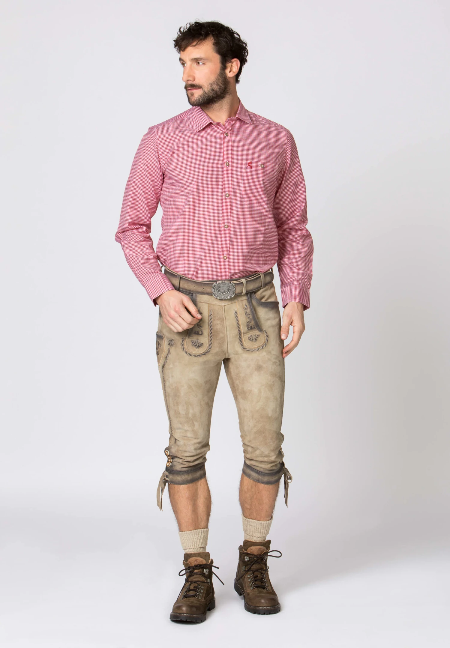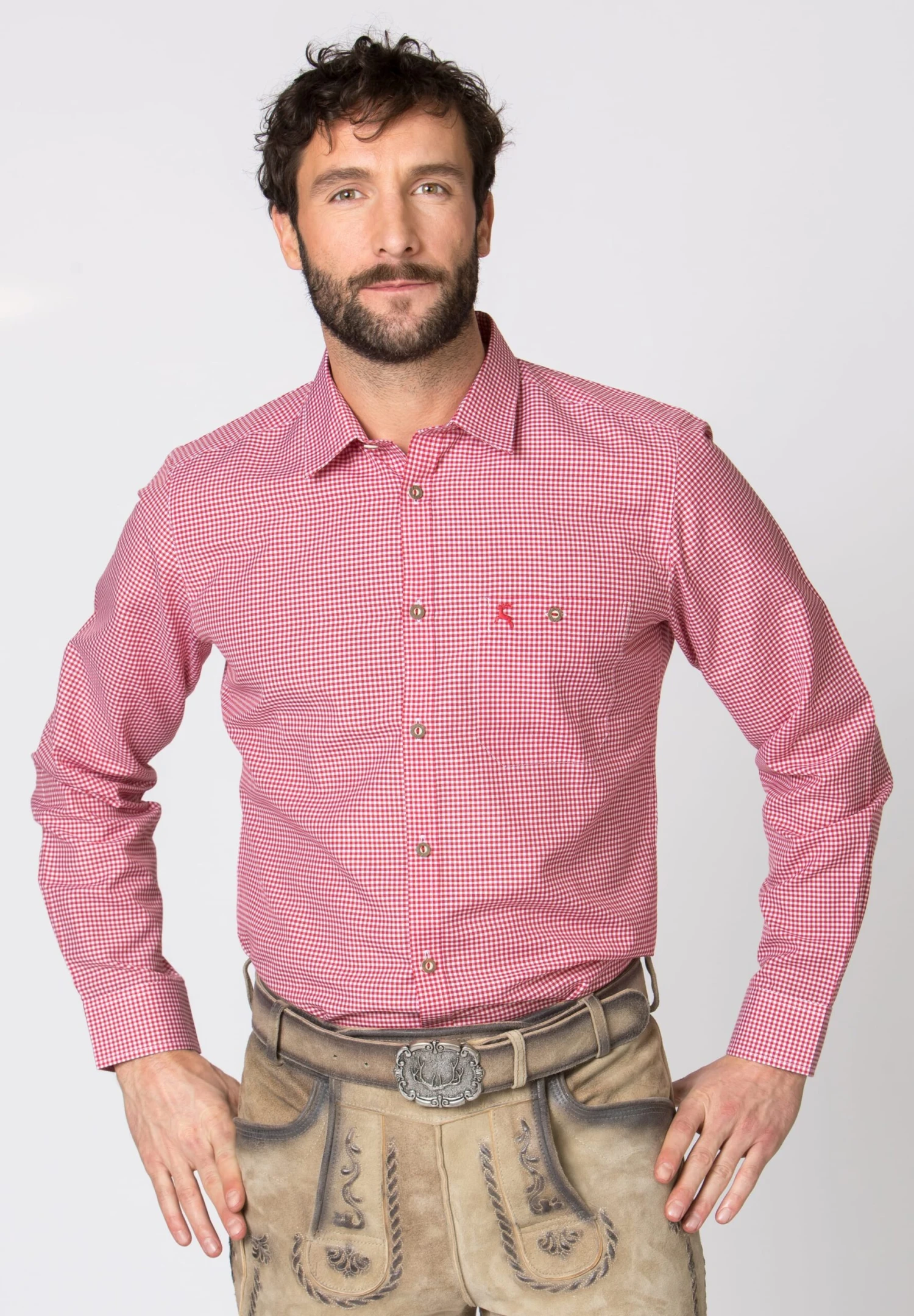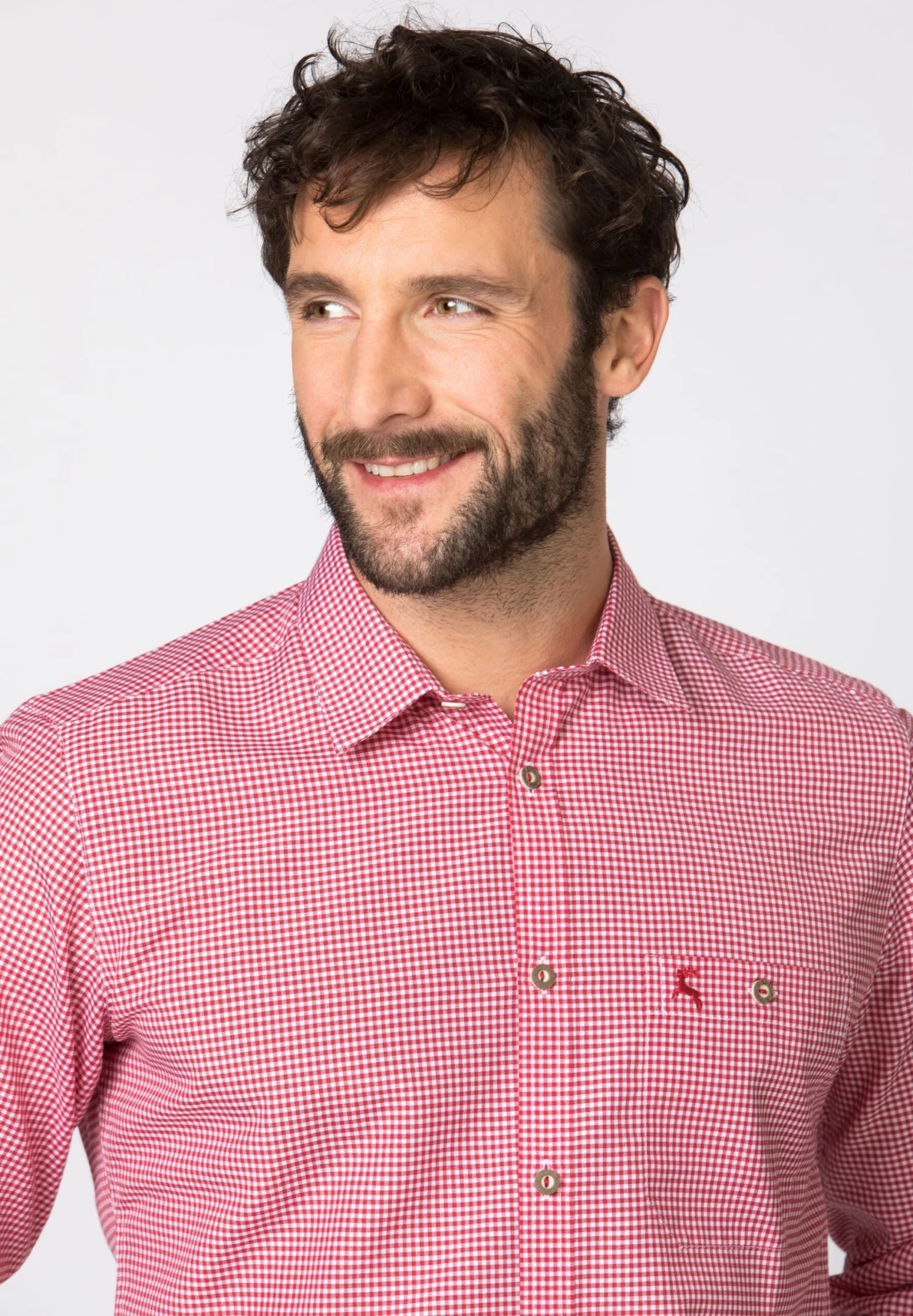 Trachtenhemd David „Comfort fit“ für Herren von Stockerpoint Classics. Das klassisch leger geschnittene Modell aus angenehmer, reiner Baumwolle überzeugt durch traditionelle Details und das retro Vichykaro. Der stylische hellblaue Kontrast in der Innenpasse unterstreichen den modernen, trachtigen Look. Der Kent-Kragen, als auch der abgerundete Saum sind zeitlos gehalten und die Brusttasche mit Hirschstickerei runden das Gesamtbild gekonnt ab.