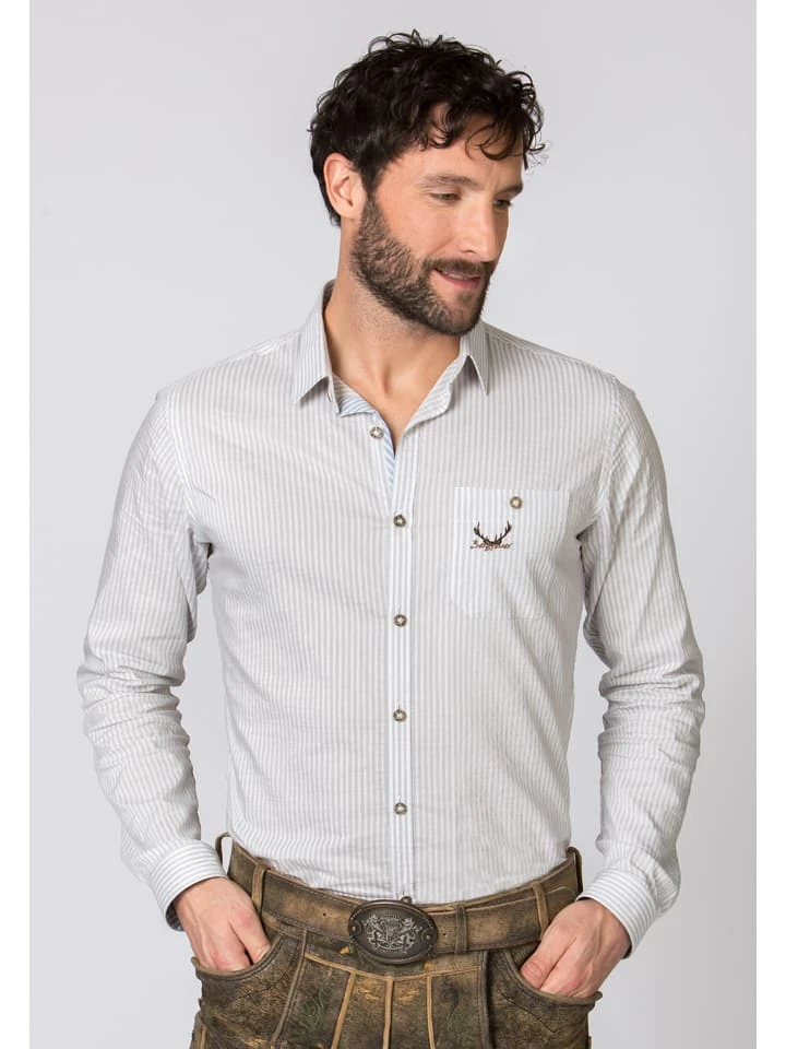 Trachtenhemd „Gino“ In Hellgrau/ Weiß